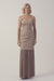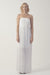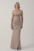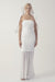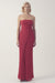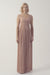 Strapless Pleated Overlay Long GownThis strapless gown is designed with a softly ruched bodice that shapes the silhouette before flowing into a smooth column base. Long pleated overlays cascade from the waist, adding movement and dimension with every step, while the floor-length finish enhances its graceful presence. A...