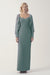 Pleated Gown with Draped SleevesThis elegant gown features a sweetheart neckline with soft vertical pleating that flows through the bodice and skirt, creating a refined silhouette. Sheer draped long sleeves fall gracefully from the shoulders, adding volume and movement while balancing the fitted column shape. Finished with a...
