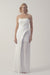 Strapless Draped Gown with Pleated HemThis strapless gown is defined by its sculpted bodice with soft draping that contours the figure, creating a refined and structured silhouette. The fitted shape transitions into a contrasting pleated hem, adding movement, lightness, and a graceful finish. A sophisticated design that balances sleek...