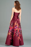 This flower long dress is cut from taffeta appliqued with jacquard flowers and has a structured bodice that's defined with cut. Sweep your hair up to showcase the gathered strapless neckline.